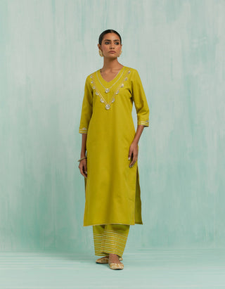 Lemon Green Rukhsaar Straight Kurta And Palazzo With Gold Silver Gota Details & Dupatta (Set Of 3)