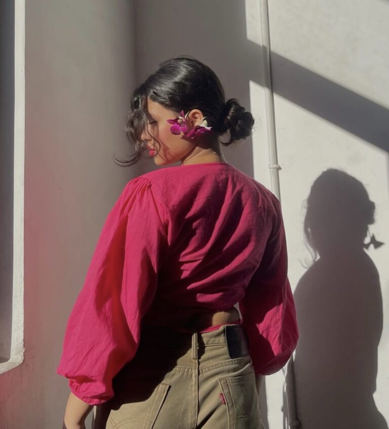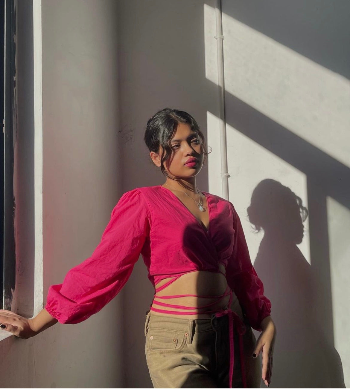 Our ‘criss cross’ top in made is pure sustainable cotton fabric with long dori detailing on waist which gives it a chick look with cleavage look and hook detailing on waist.