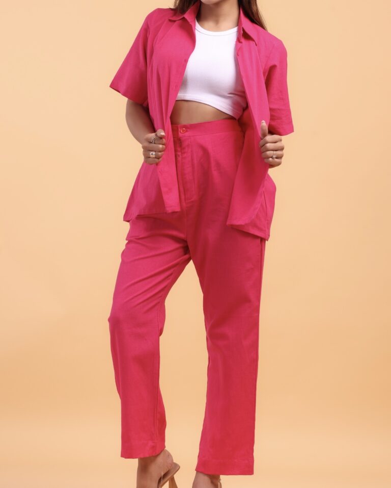 Cool Shirt & Pant co-ord has a shirt and straight fit pants. The shirt has a collared neck and 3/4th sleeves. The straight fit pants have regular length and mid-rise waist. This co-ord is soft and comfortable to wear.