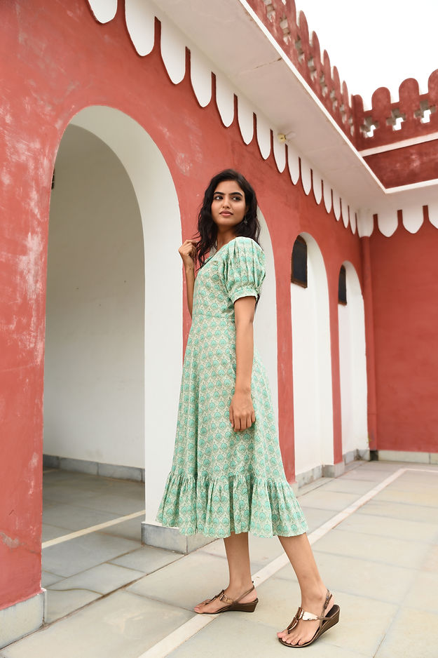 With offbeat sleeves complementing the Boho-chic look, our midi-dress flows like the summer breeze. Paired with either flats or heels, it makes up for wholesome experience.