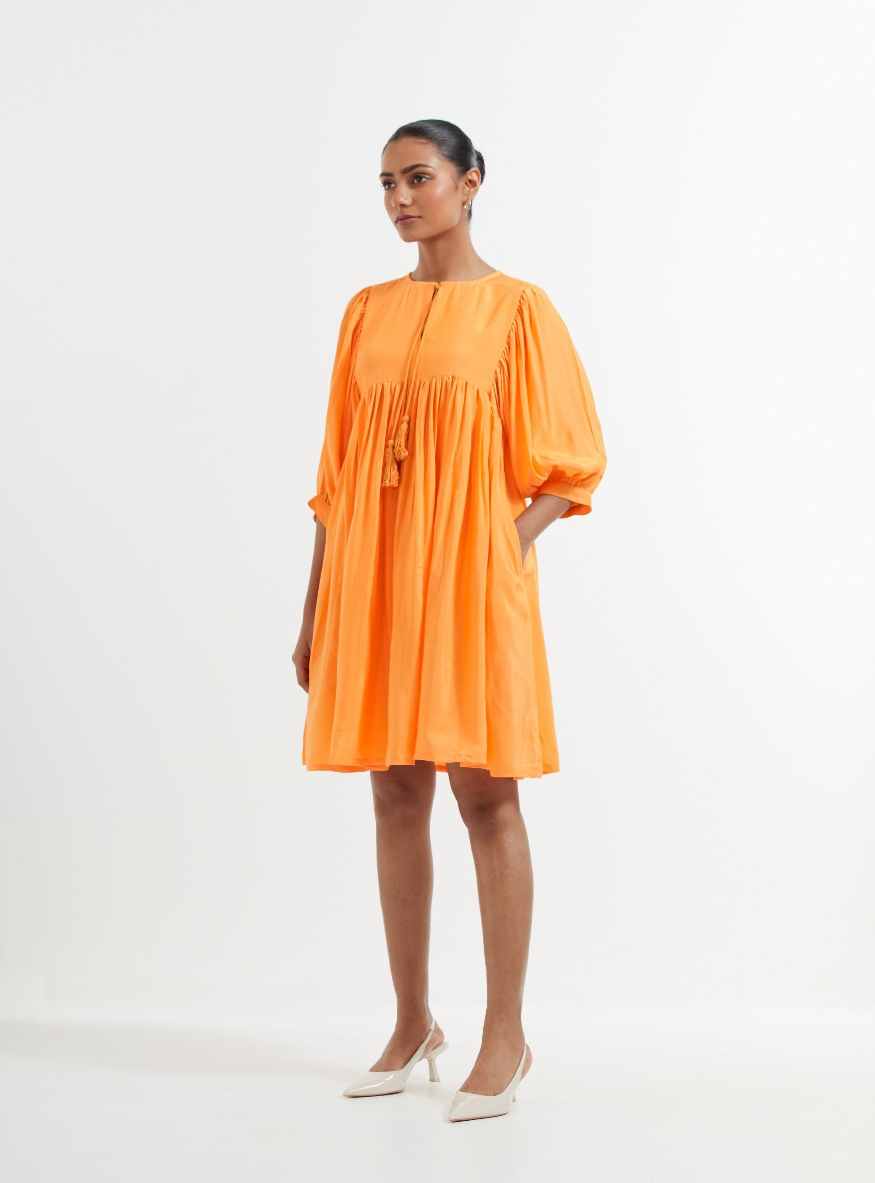 Tahiti, a truly inspired Tahitian dresses and relaxed lifestyle , is perfect mini summer dress. Crafted out of softest vibrant silk fabric, the Tahiti has a round neckline with twisted cotton cords , puff shoulders and easy breezy mini skirt with pockets, evoking a relaxed and happy summer holiday vibe.