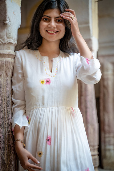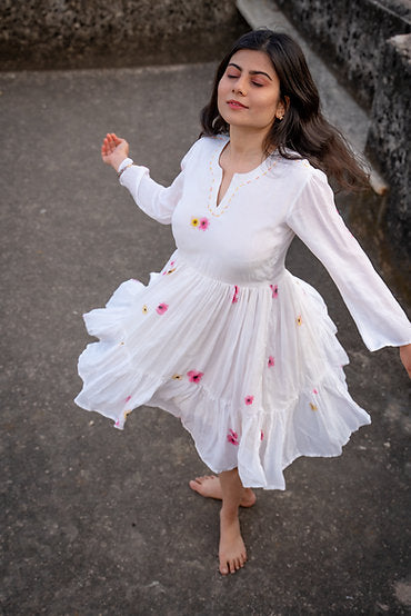 With refined details on the neckline,this cosy petals mini dress comes with cotton lining, perfect for a day out ! The gathers at the waistline & the bottom hem adds the beauty to the look, matching the prints perfectly. This dress is not only an add up to your feminity but also portrays your inner confidence & serenity.