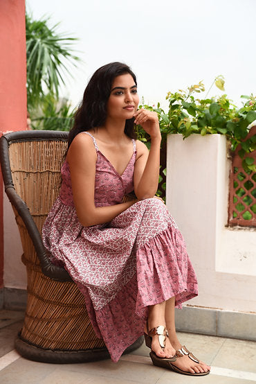 This strappy dress is an expression of untold stories of Indian flora. A lounge wear that can be worn in any casual setting with a relaxed yet dainty look, the dress can also be worn as maternity wear.