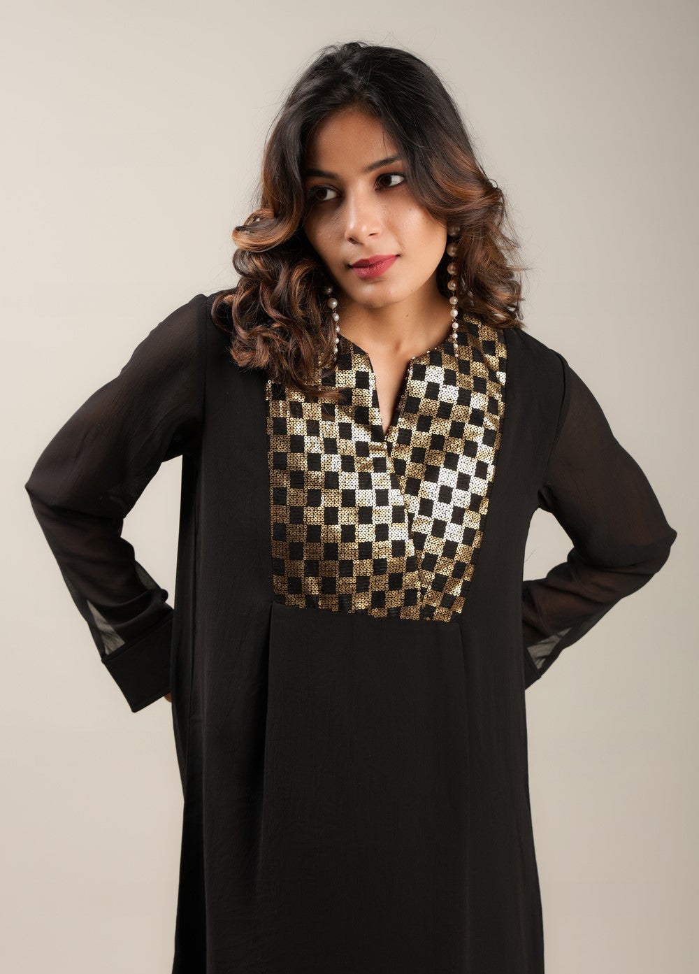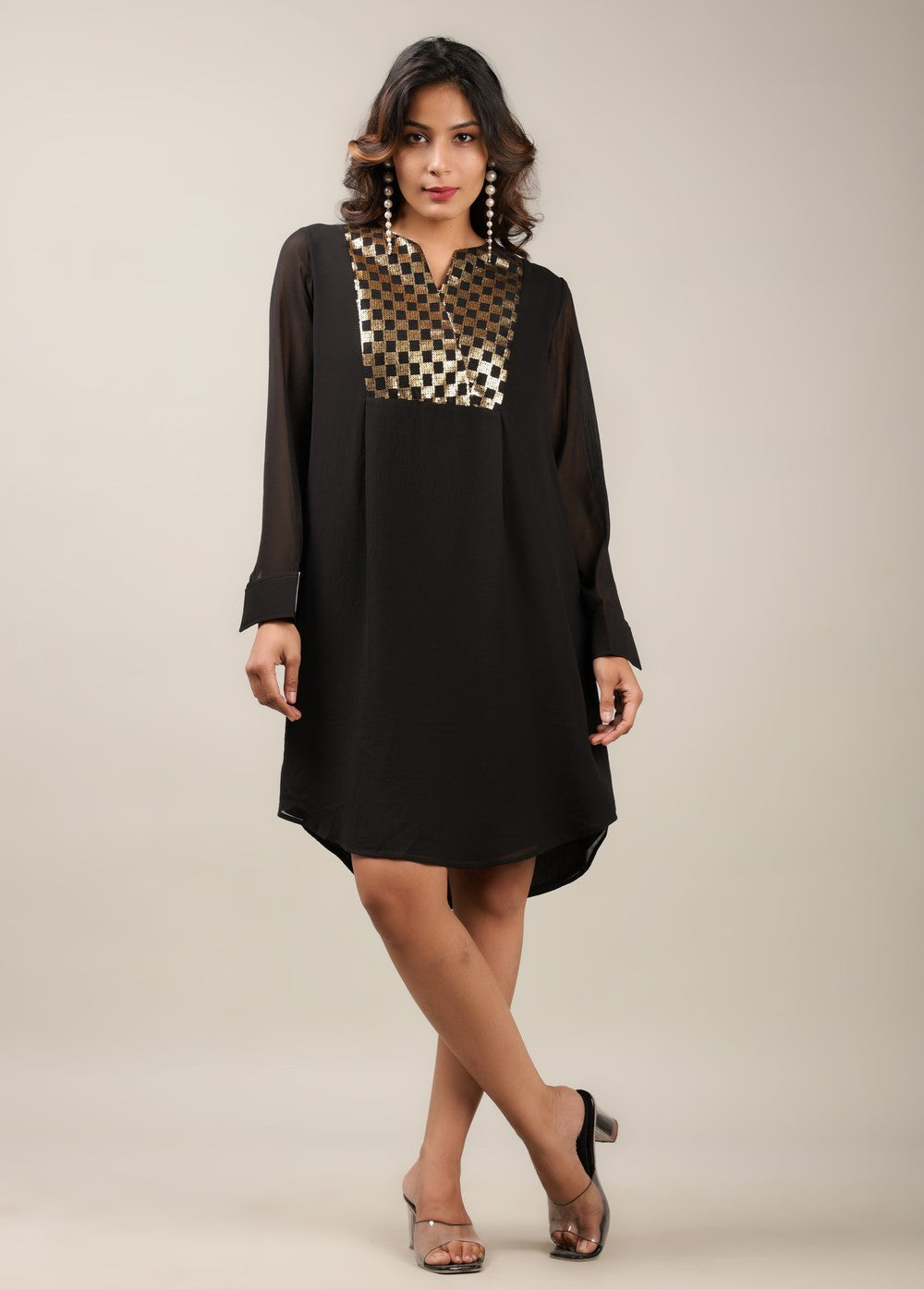 You can never go wrong with a black dress ! Featuring an embellished bodice, this dress possesses a fashionable appeal. Style this dress with a pair of heel for a classy modish look.