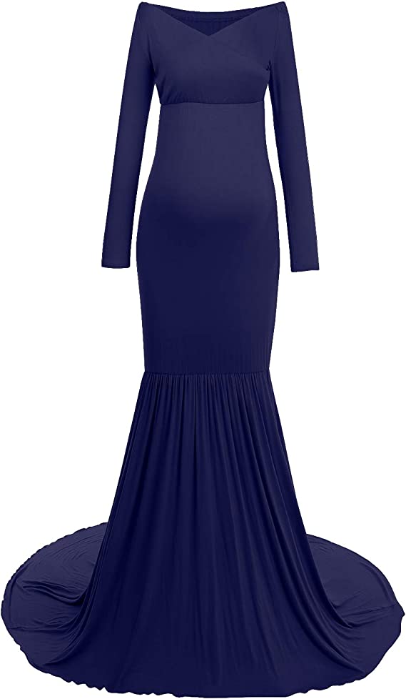 OFF SHOULDER LONG SLEEVE MERMAID MATERNITY GOWN FOR PHOTOSHOOT