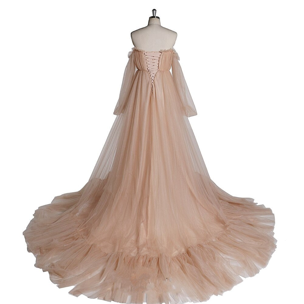 Off-Shoulder Tulle Maternity Gown for Photoshoot