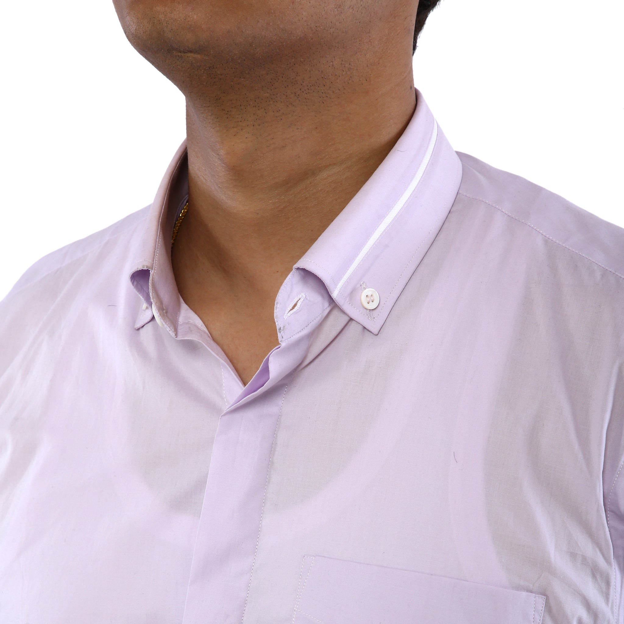This men's lavender shirt with lilac accents combines a classic design with a soothing color palette for a laid-back yet sophisticated look. The front and back are crafted from a single layer of high-quality, lightweight fabric that has been finished with elegant white piping on the collar and cuffs. This shirt adapts seamlessly to various occasions and outfits. Pair it with tailored trousers and dress shoes for a smart-casual look, or wear it with jeans and sneakers for a more laid-back and casual vibe. Embody a sense of relaxation and confidence with this shirt's relaxed yet refined aesthetic.