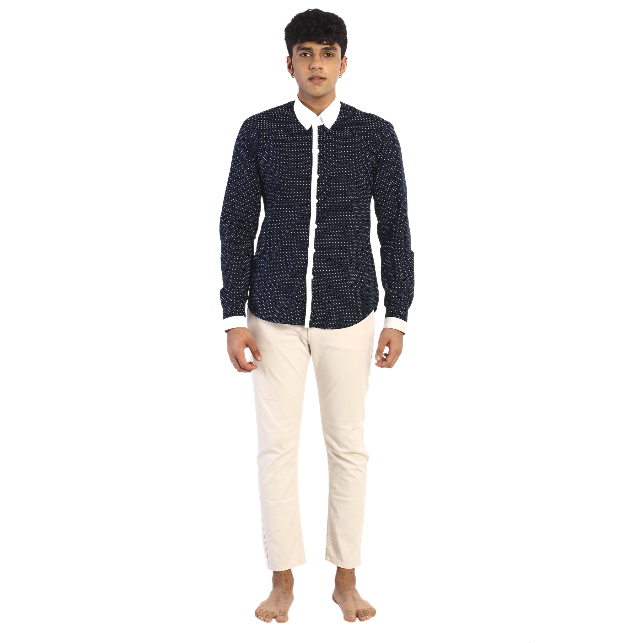 This shirt showcases a classic design with a modern twist, making it suitable for both formal and casual occasions. The shirt features a dark blue base adorned with an intricate pattern of small dots. The subtle yet stylish dot motif adds visual interest and depth to the shirt, creating a refined and polished look. Pair it with tailored trousers or a blazer for a formal and sophisticated ensemble, perfect for business meetings or special occasions. Alternatively, wear it with jeans or chinos for a more relaxed and casual look that exudes effortless style. Experience the perfect balance of style, comfort, and sustainability with the Dotted Blue Shirt from WearVega.