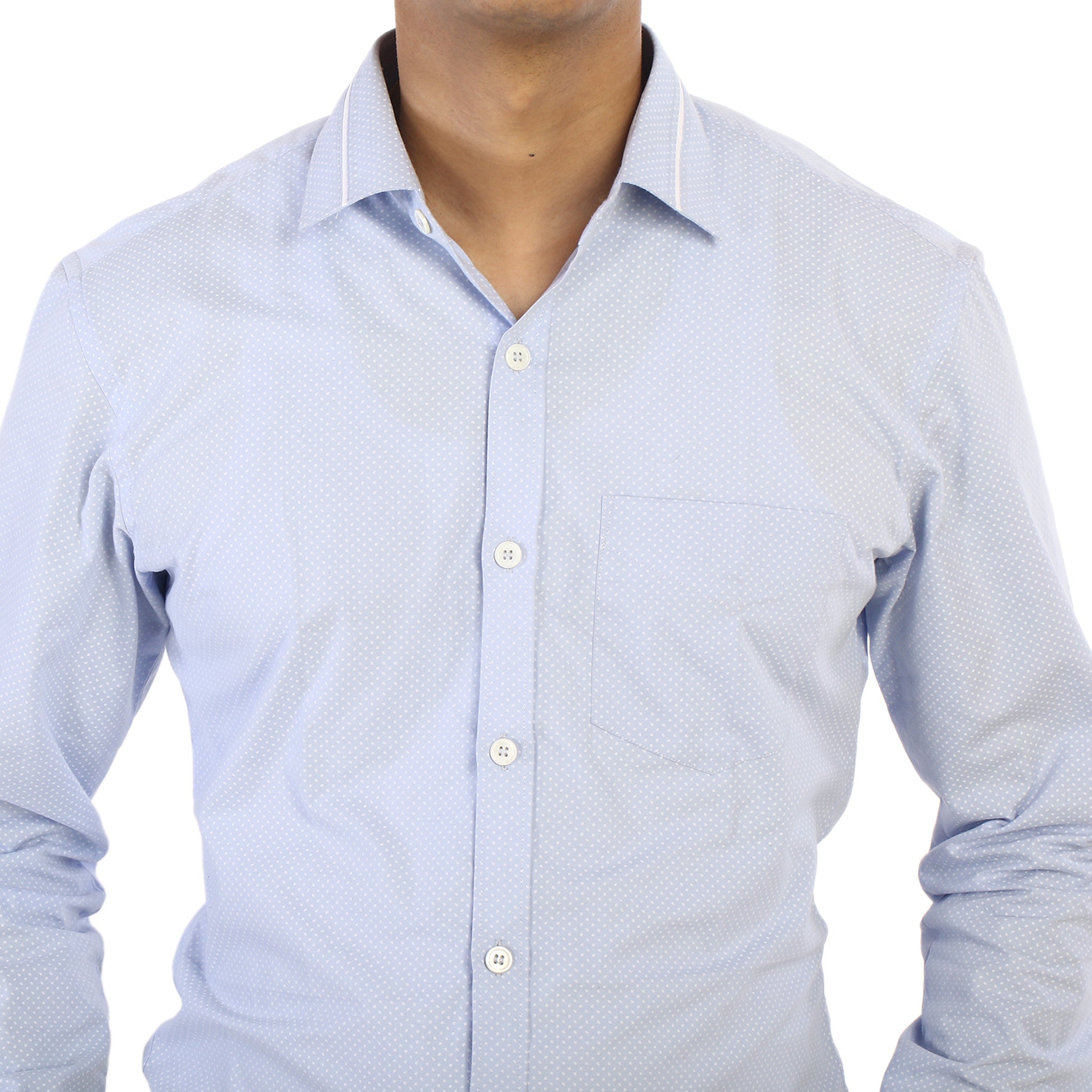 The blue-dotted shirt is a captivating and refreshing addition to any man's wardrobe. This men's shirt draws inspiration from the serene beauty of ice-cold water, combining a crisp design with a cool aesthetic. The shirt features a classic button-down design with a tailored fit, providing a sleek and polished appearance. It exudes a sense of calmness and sophistication, making it suitable for a variety of occasions. Whether you're attending a formal event or aiming for a chic and understated look, this shirt effortlessly enhances your ensemble. Embrace the captivating allure of this comfortable blue-dotted Shirt from WearVega.