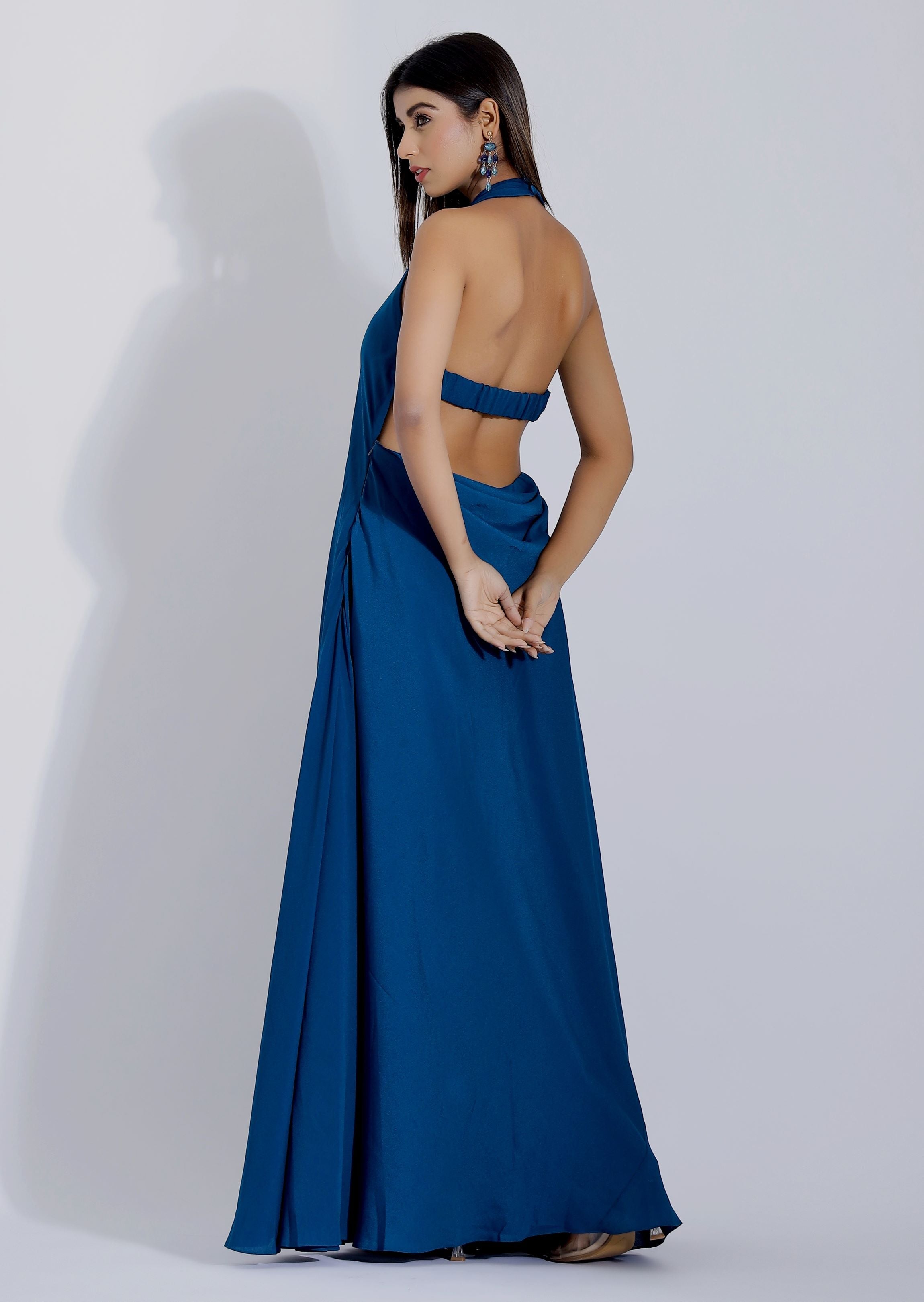 Step onto the red carpet and turn heads in our Teal Blue Backless Gown. This captivating evening gown is designed to make you feel like a star. The stunning teal blue color will make you stand out in any crowd, while the elastic band at the back provides maximum support and comfort. The backless design adds a touch of sensuality, leaving a lasting impression. With its padded cups, you'll feel confident and glamorous all night long. Whether it's a black-tie event or a special occasion, this backless gown is the epitome of elegance. Embrace your inner diva and shine bright in our Teal Blue Backless Gown.