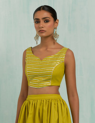 Lemon Green Kali Short Kurta And Palazzo With Gold Silver Gota Details (Set Of 2)