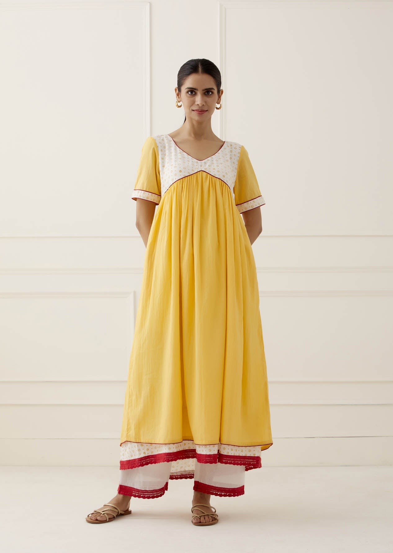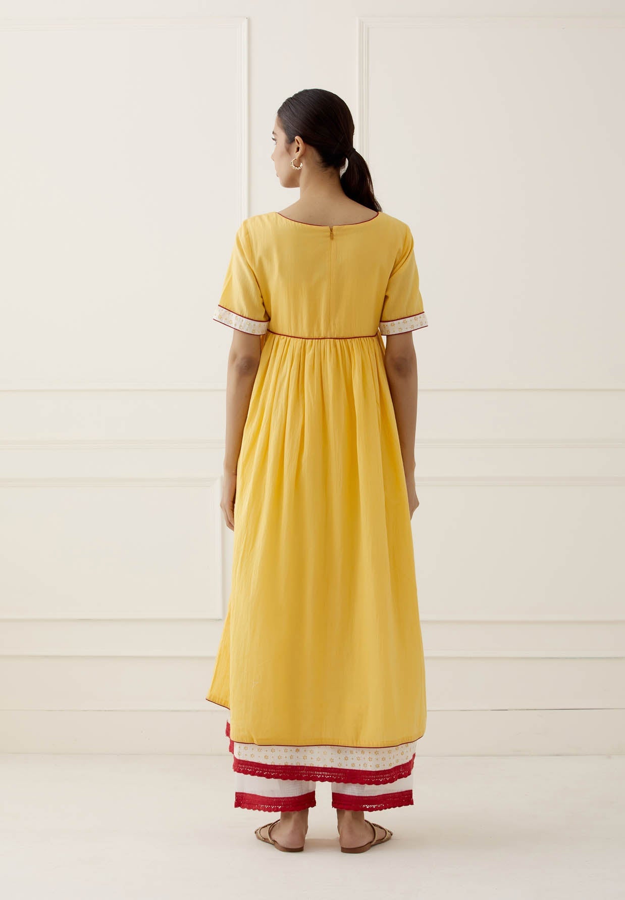 Beautiful Flaired Kediya Kurta is a blend of comfort and style. It can be styled individually as a dress or can be paired with our maisa pants.