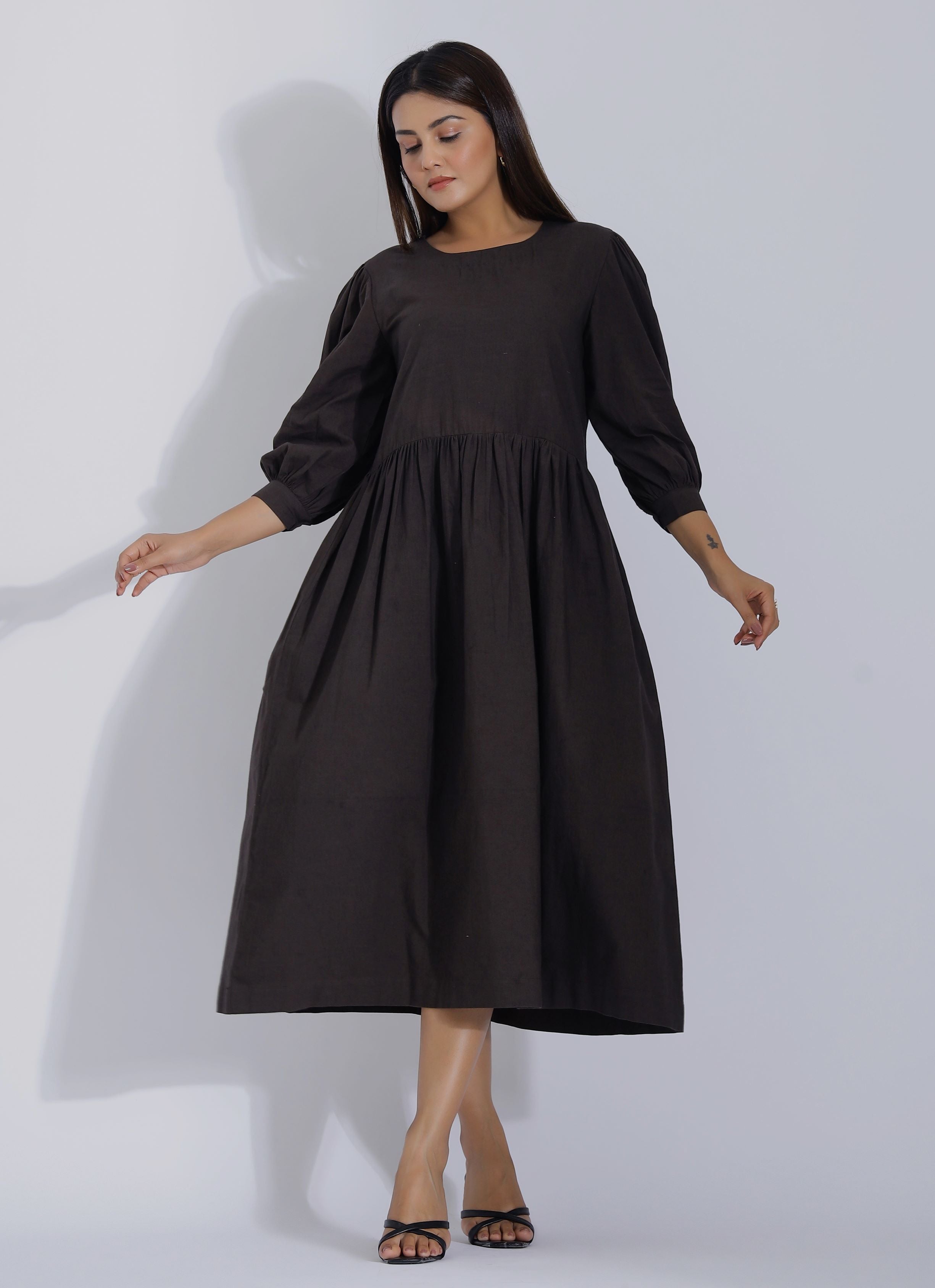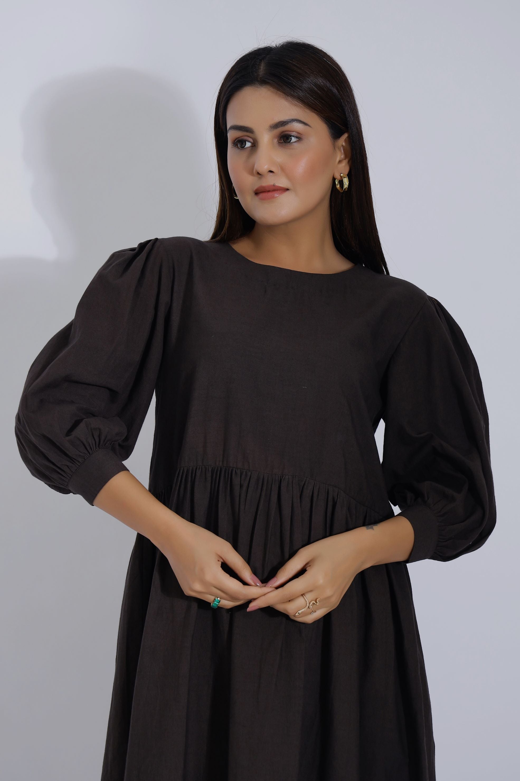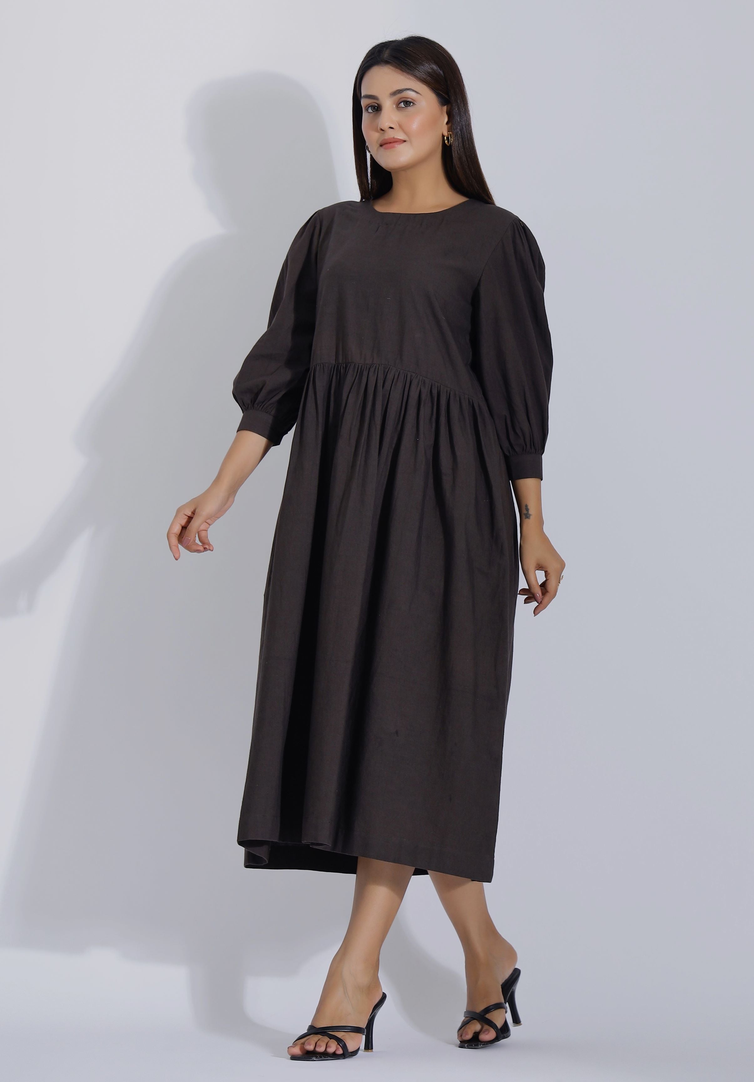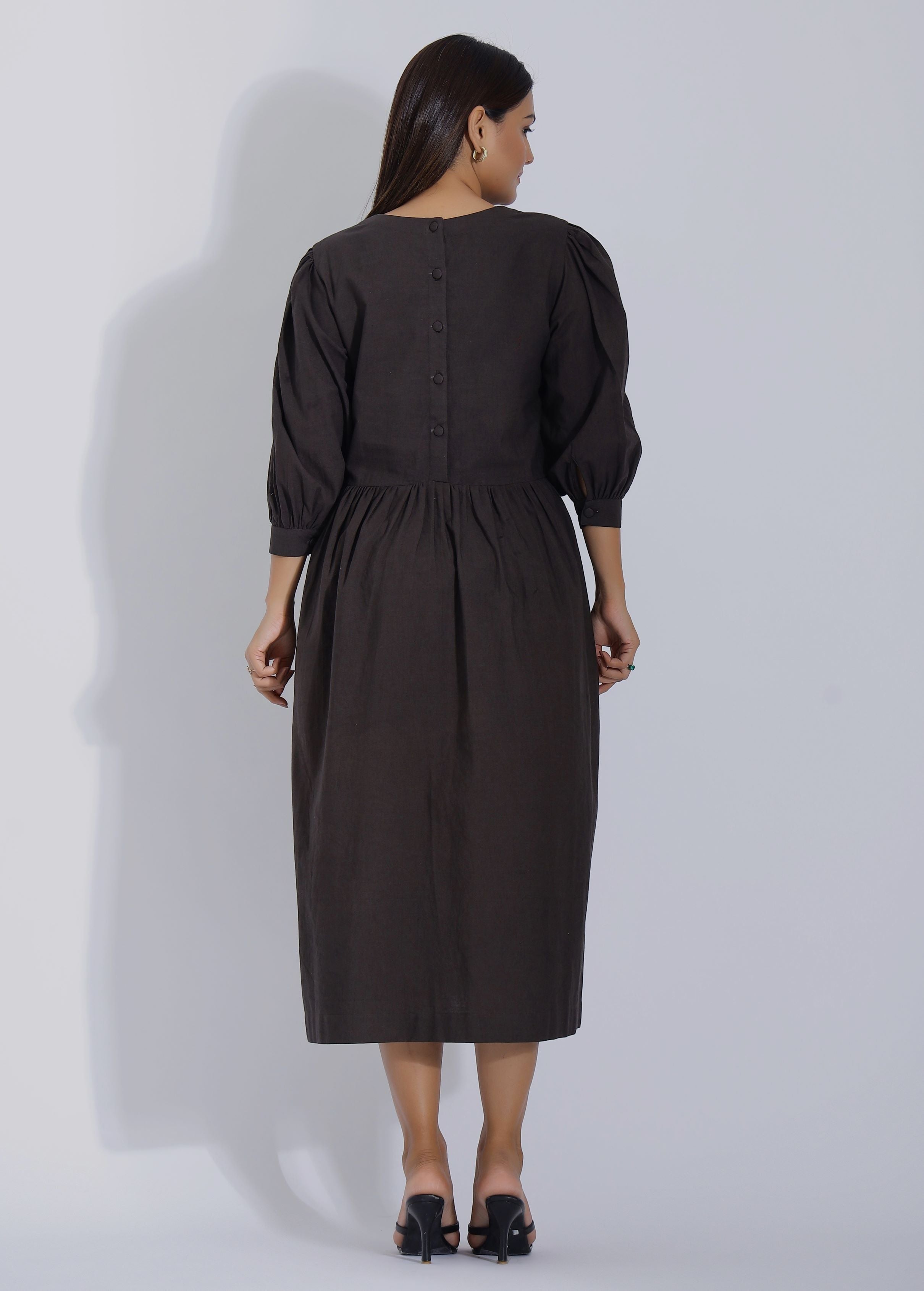 Get ready to turn heads and make a statement with our stunning Brown Casual Midi Dress. The rich brown color is perfect for any occasion, whether it's a brunch date or a night out with friends. The midi length adds a touch of elegance, while the back buttons till the bodice add unique and stylish detail. This dress is designed for comfort and versatility, making it perfect for both casual and semi-formal events. Embrace your inner fashionista and step out in style with our Brown Casual Midi Dress. Get yours today and be the envy of everyone around you.