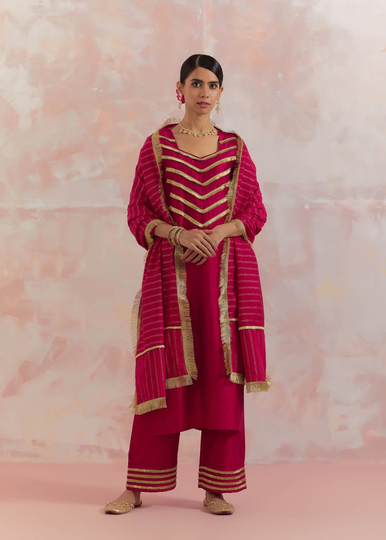 Red Rooh Kurta With Pant (Set Of 2)