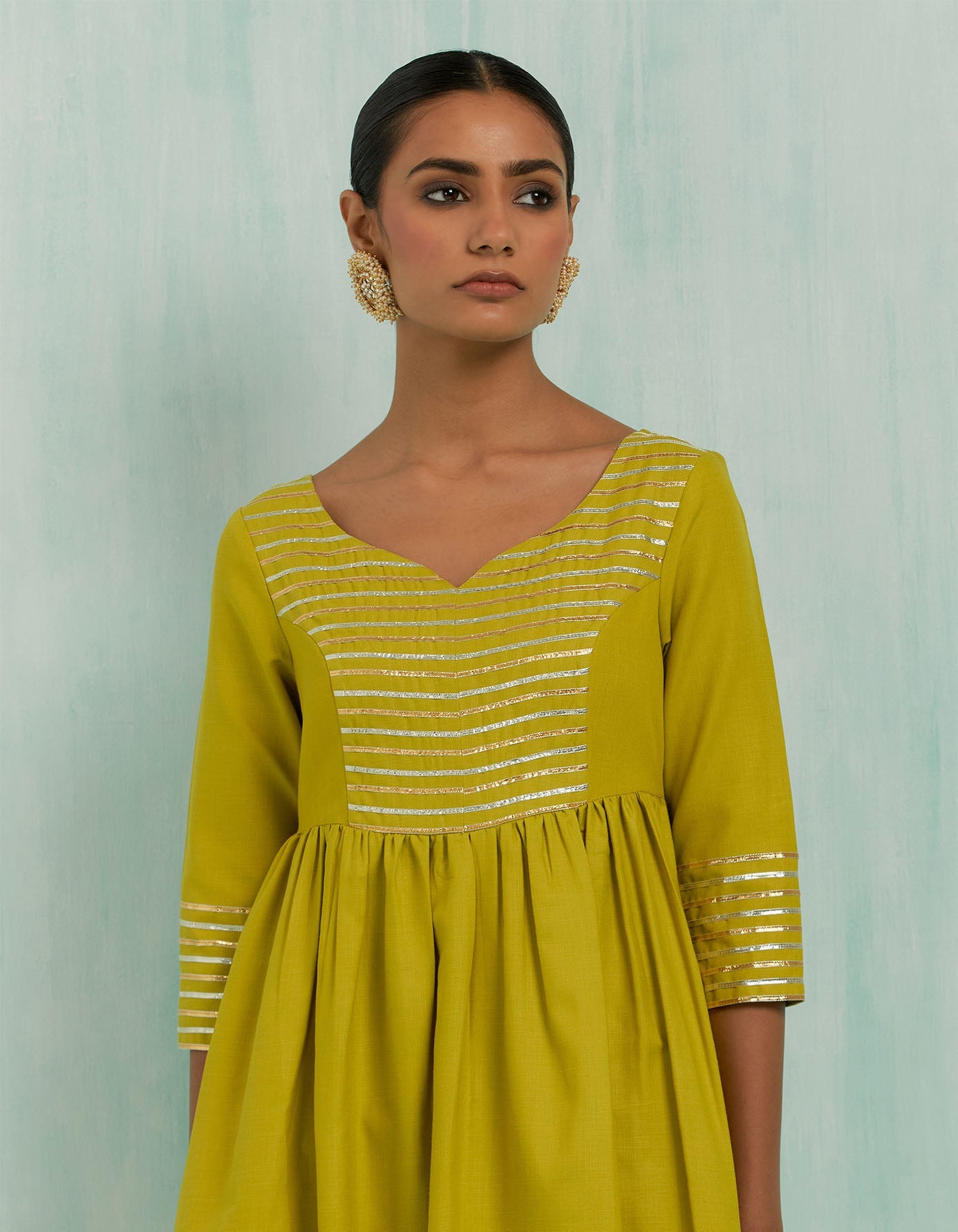 Lemon Green Naaz Anarkali Kurta And Palazzo With Gold Silver Gota Details & Dupatta (Set Of 3)
