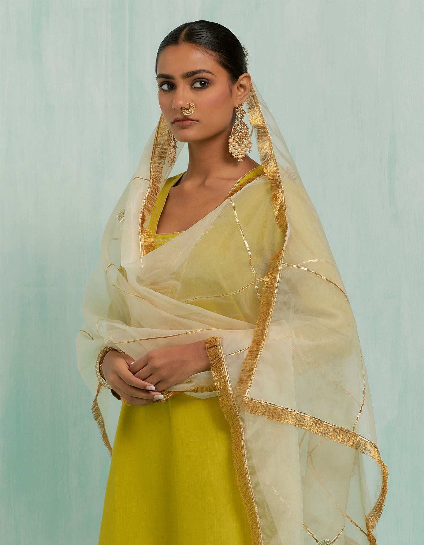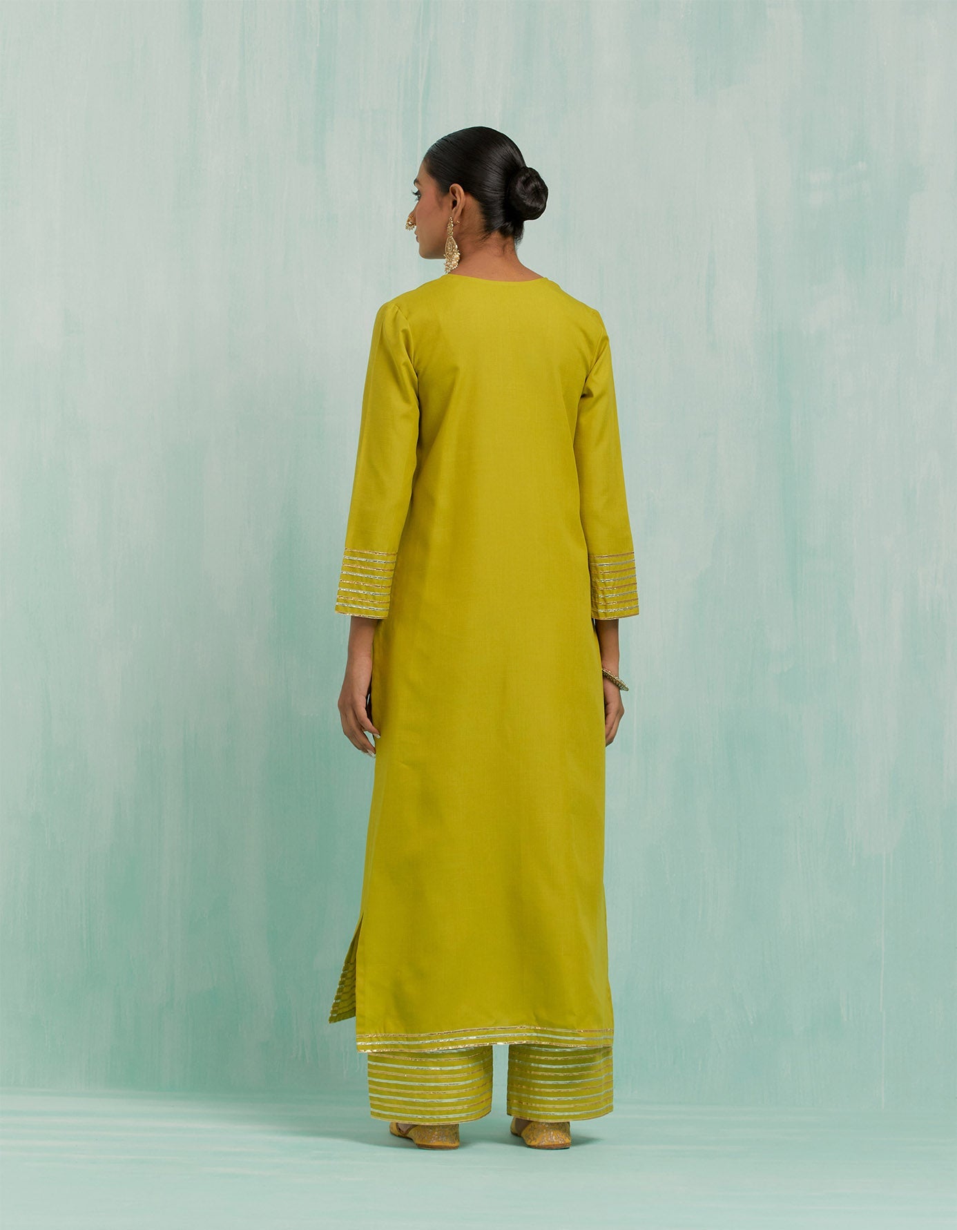 Lemon Green Rukhsaar Straight Kurta And Palazzo With Gold Silver Gota Details & Dupatta (Set Of 3)