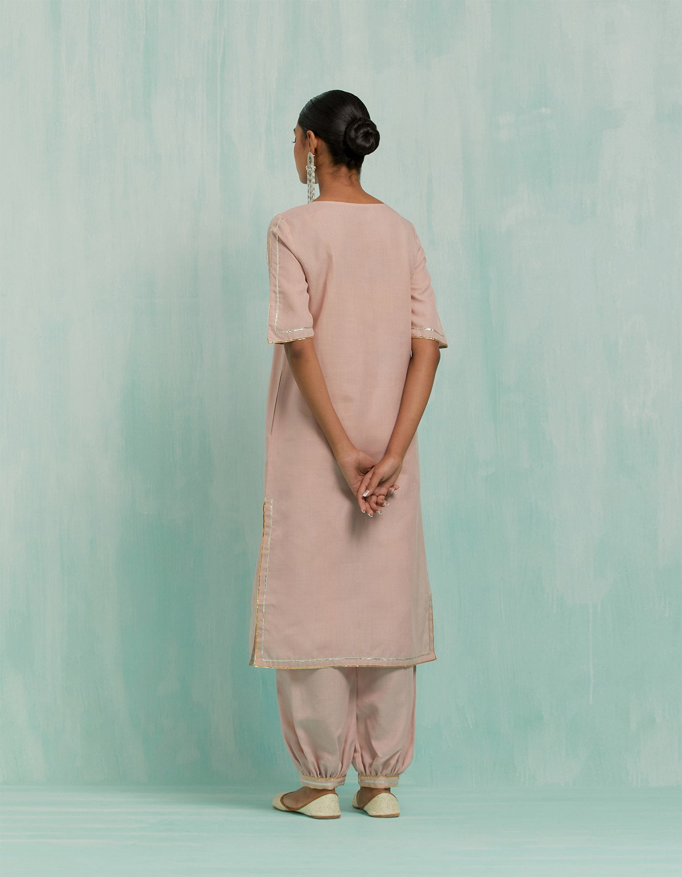 Pale Pink Rukbat Kurta And Salwar With Gold Silver Gota Details & Dupatta (Set Of 3)