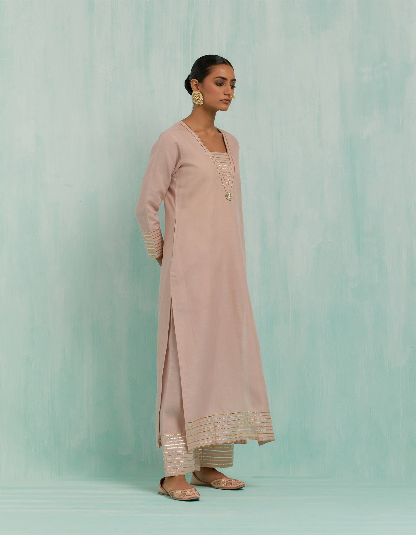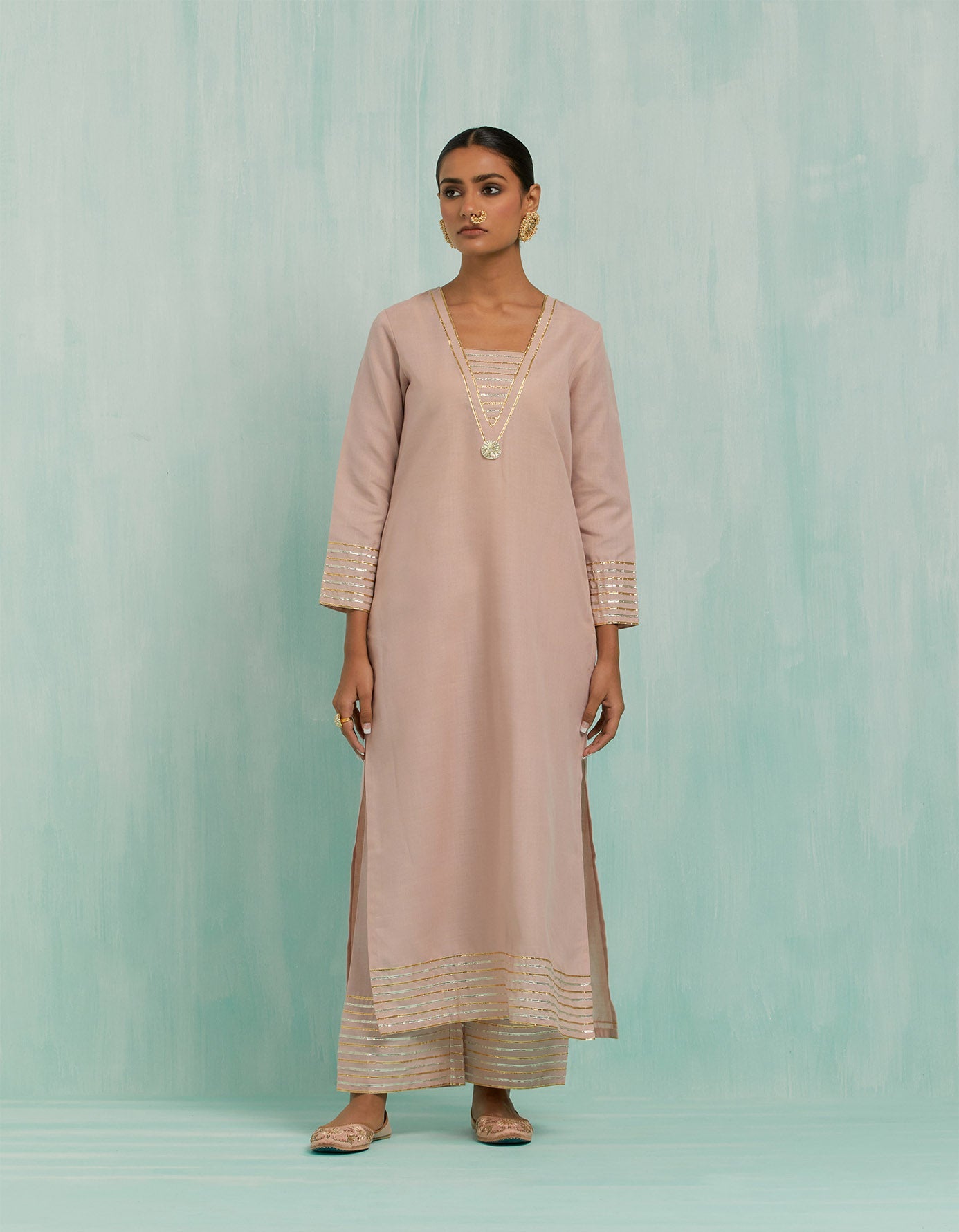 Pale Pink Rukhsaar Straight Kurta And Palazzo With Gold Silver Gota Details & Dupatta (Set Of 3)