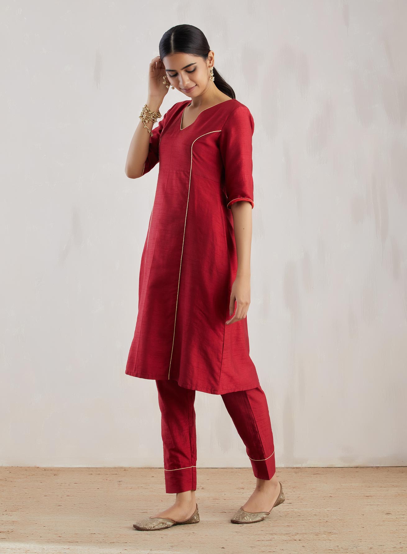 Red Markab Kurta with Pant and dupatta (Set of 3)