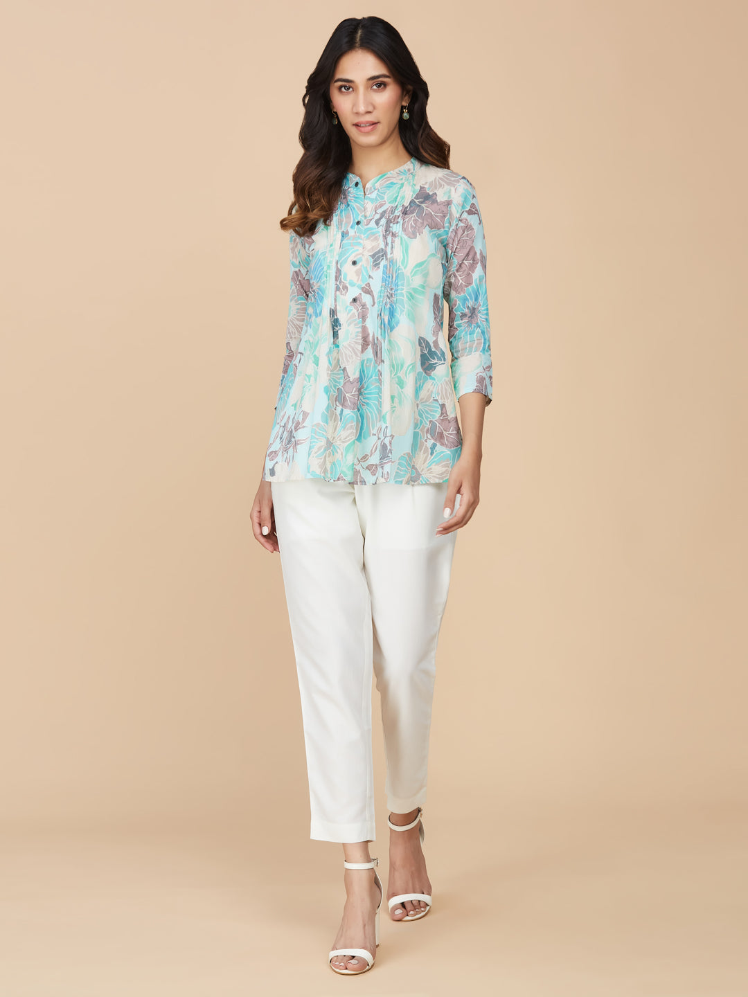 Have a confident look and feel in this Floral Printed Cotton Mull Top. This cotton top is made from breathable fabric and will keep you cool all day long. The beautiful artful floral printed cotton mull top is ideal for office wear and everyday occasions. Pair this with your favorite denim shorts for an elegant look that is sure to be your go-to attire in the office or on dates!