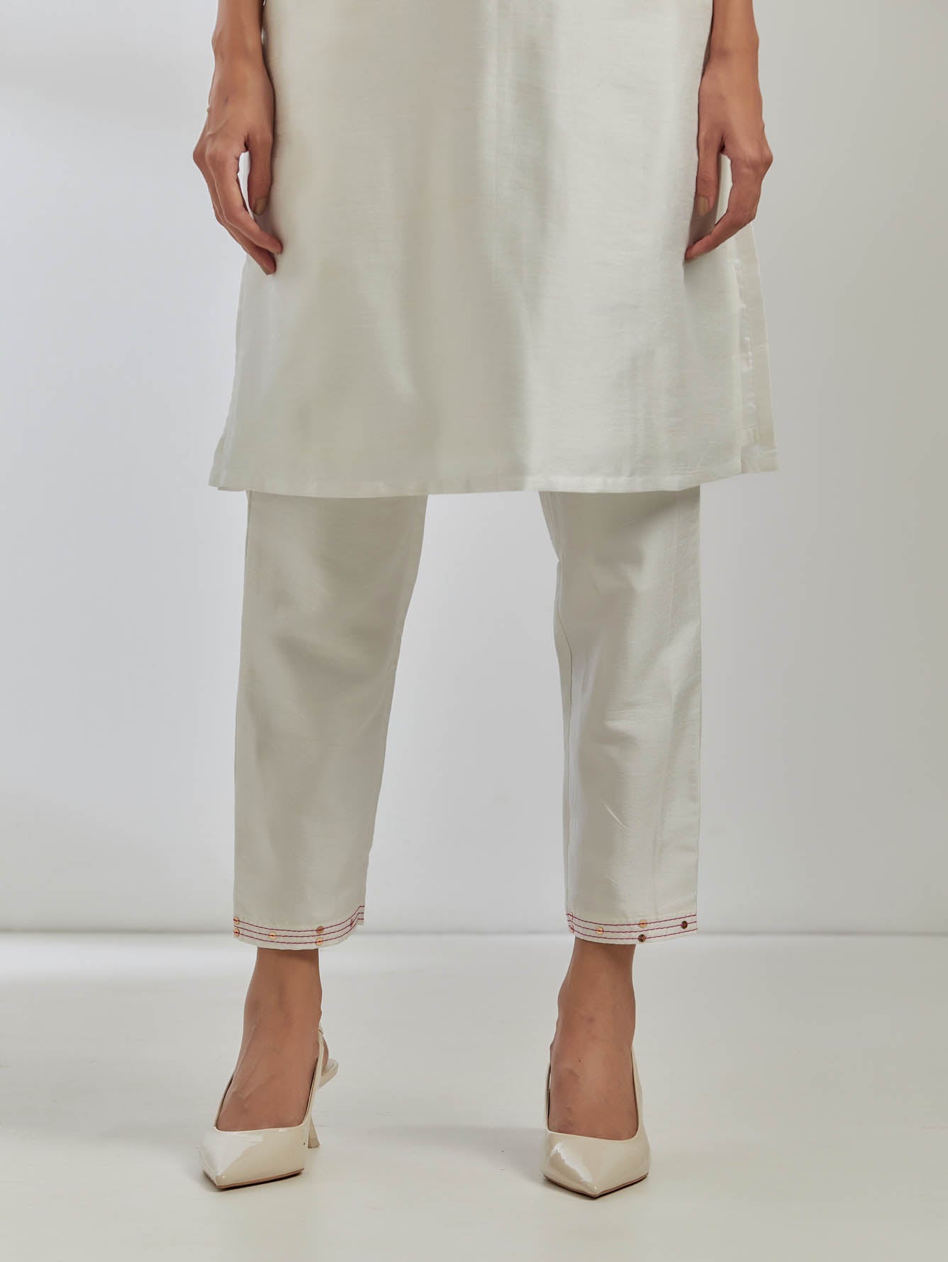 White Raw Silk Jenifer Kurta With White Pant (Set Of 2)
