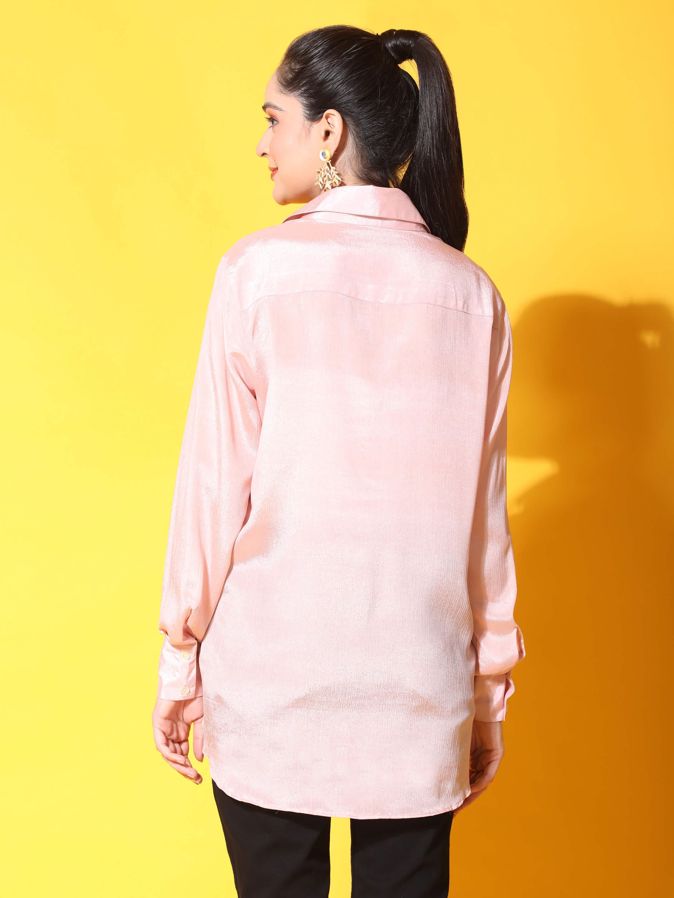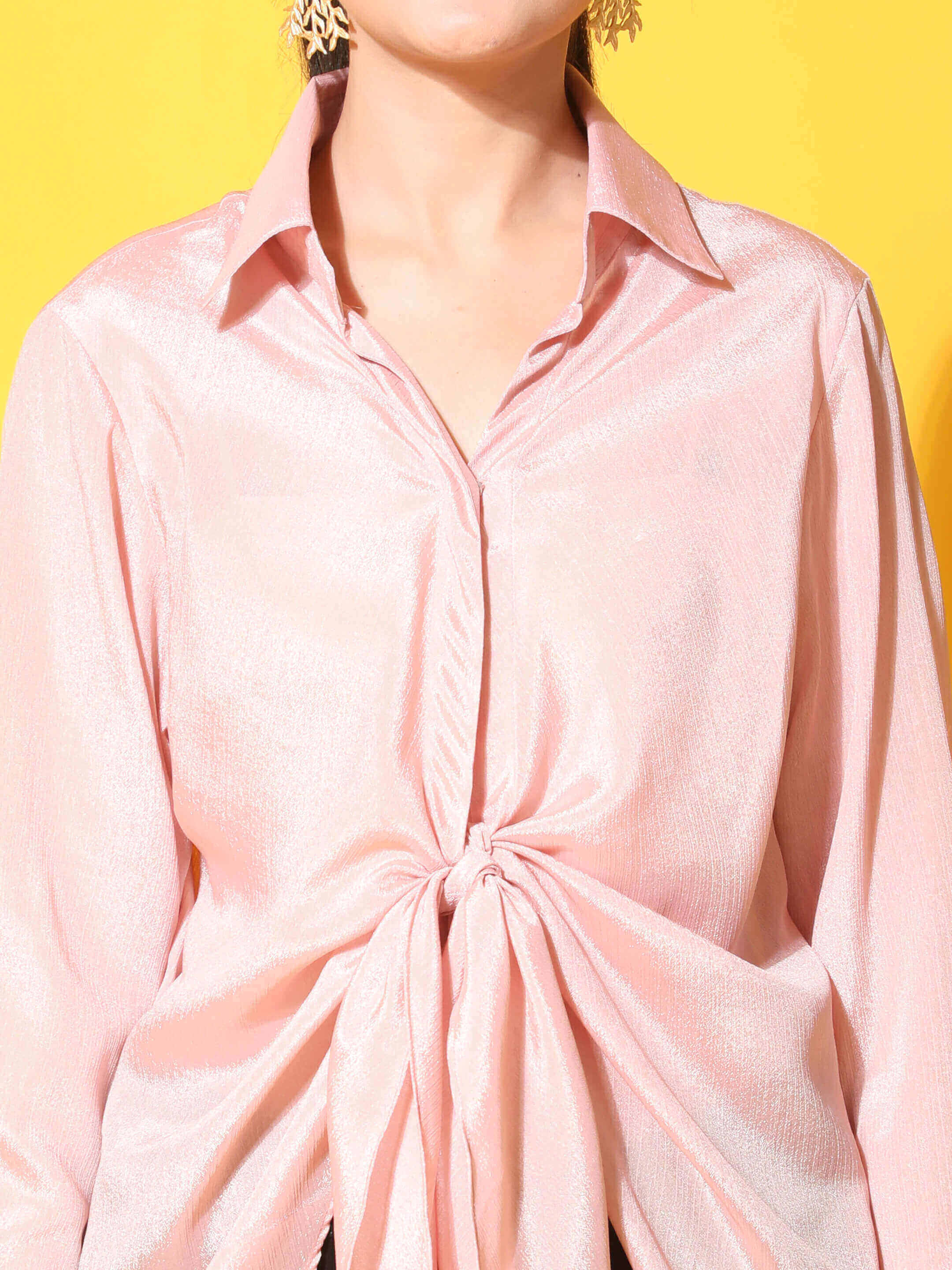 This pink front knot shirt comes in a high-low pattern with a longer back and shorter front that wraps around your body with a tie front detail and accentuates your waist. Perfect for causal as well as formal events!!