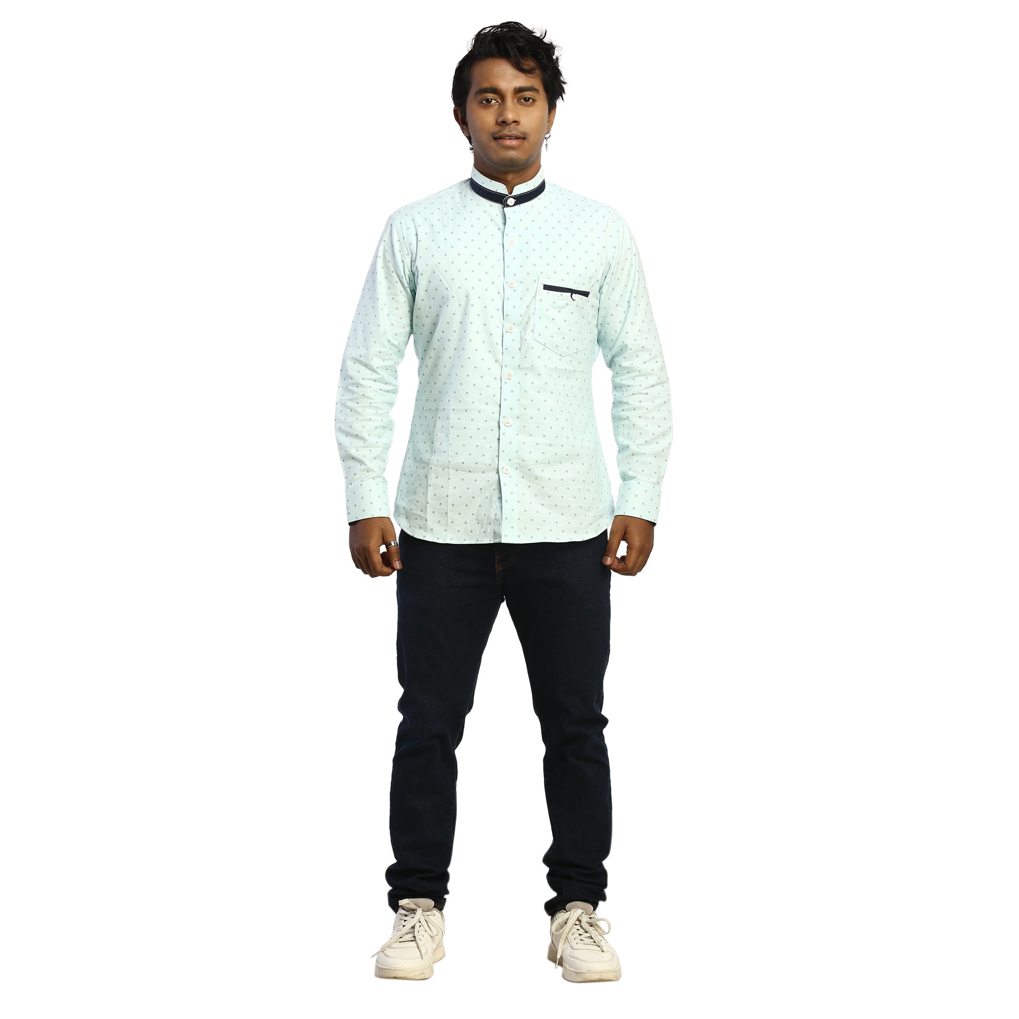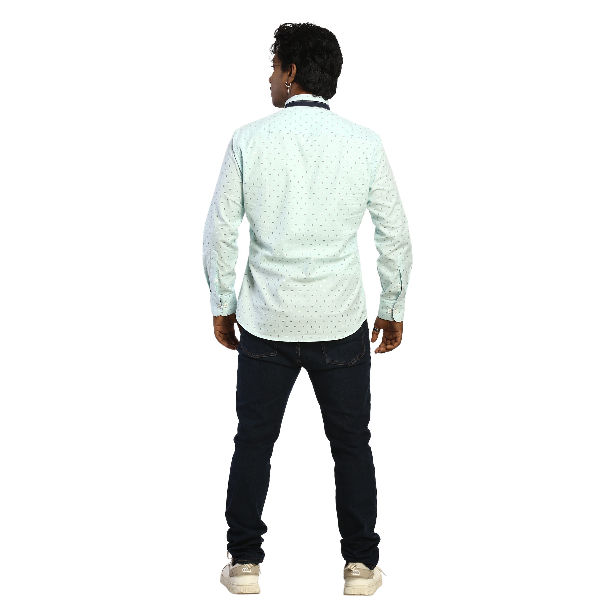 This Stylish Dotted Shirt from WearVega is a captivating and versatile piece that captures the essence of a clear blue sky with a touch of playful charm. The shirt boasts a classic button-down design with a tailored fit, providing a polished and refined appearance. The sky blue color of the shirt evokes a sense of serenity and tranquility, while the white dots add a touch of playfulness and personality. It has a contrast design on the collar stand, cuff and back side of the collar with extra pocket detailing that gives elegant look. Pair it with tailored trousers or chinos for a sophisticated and polished look, or dress it down with jeans for a more relaxed and casual vibe.